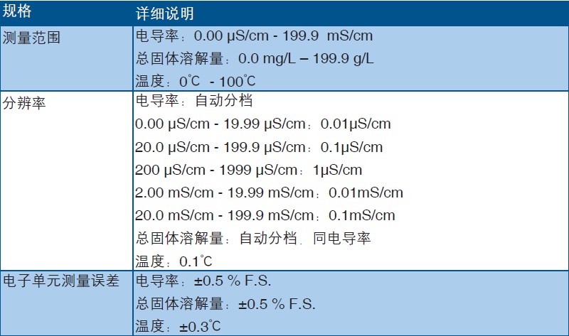 ◆ 可选择2套标准共7种电导率标准液来进行校准,满足不同需要。